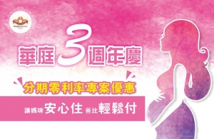 感謝喜歡我們的所有好朋友,在即將屆滿三週年前夕,華庭特別獻上前所未有的優惠活動 → 「分期零利率專案優惠 」,讓媽咪安心住,爸比輕鬆付! ...